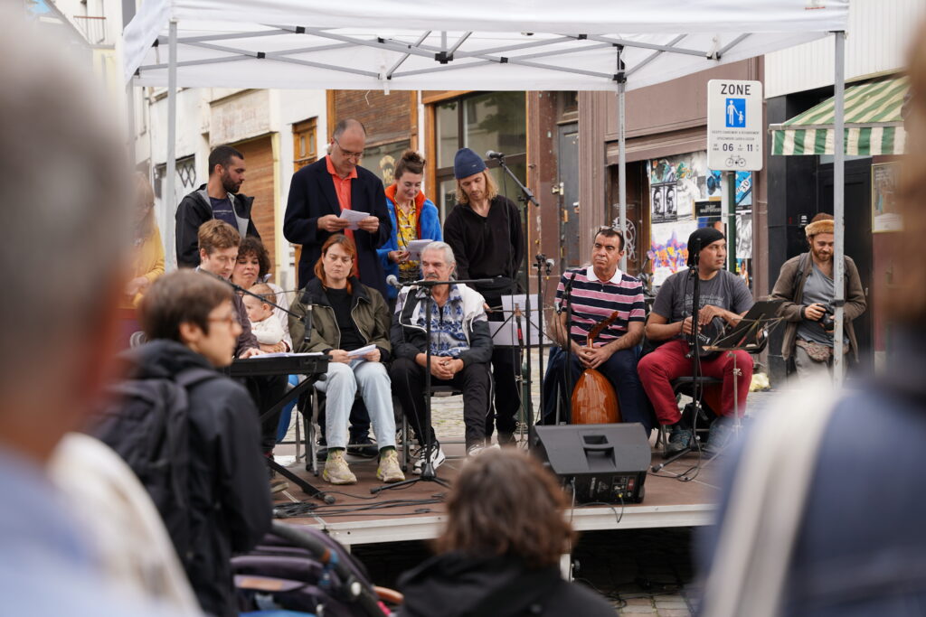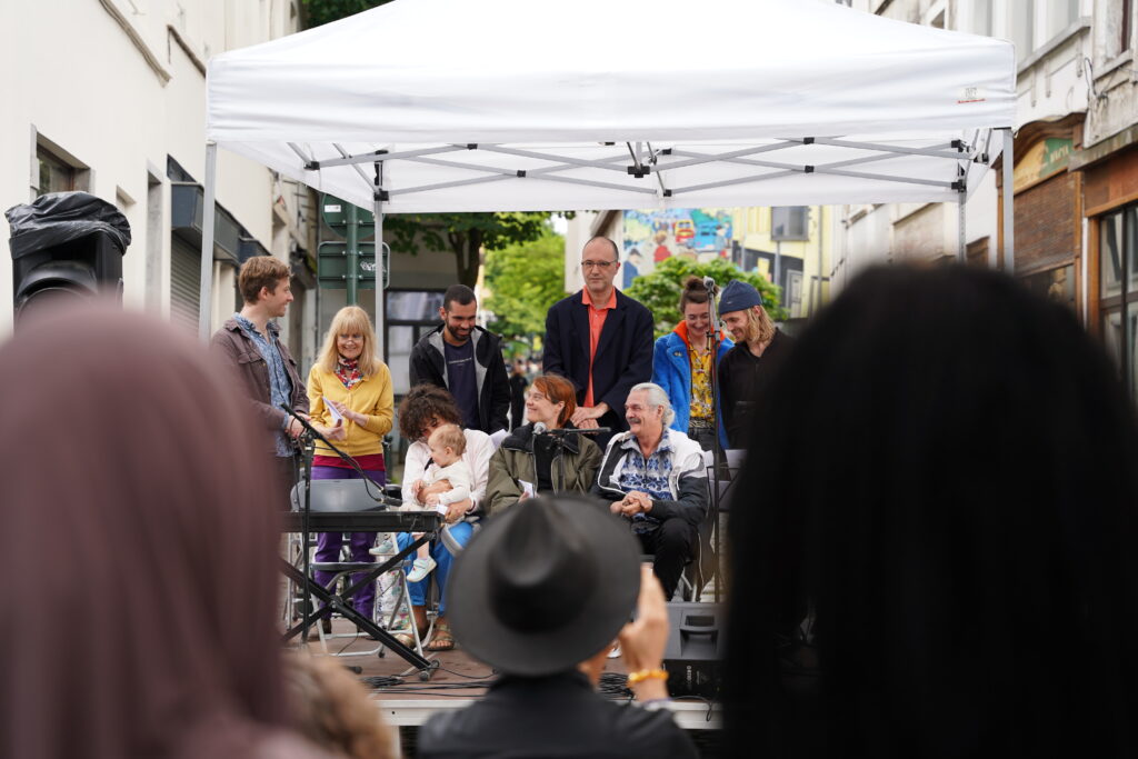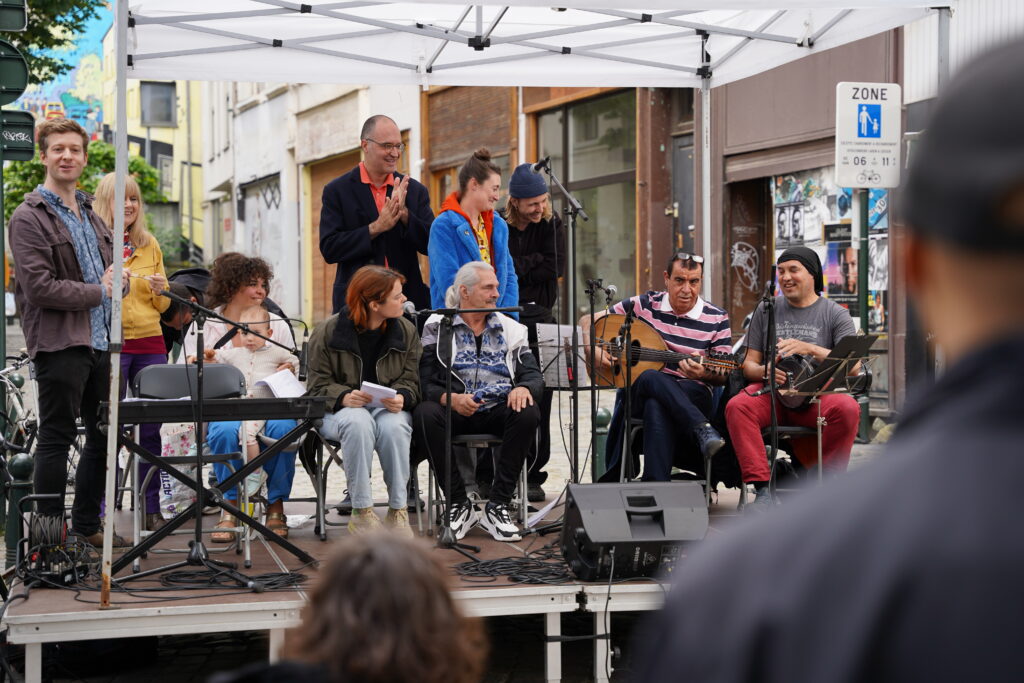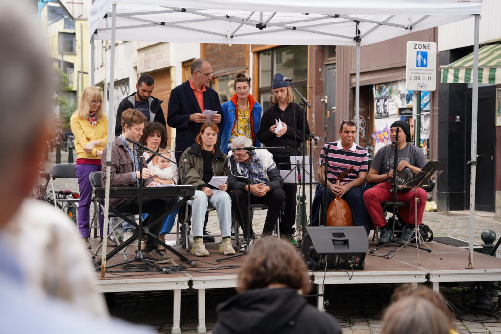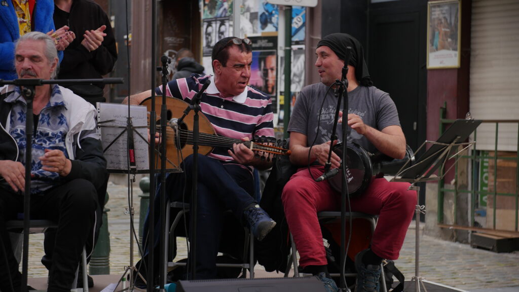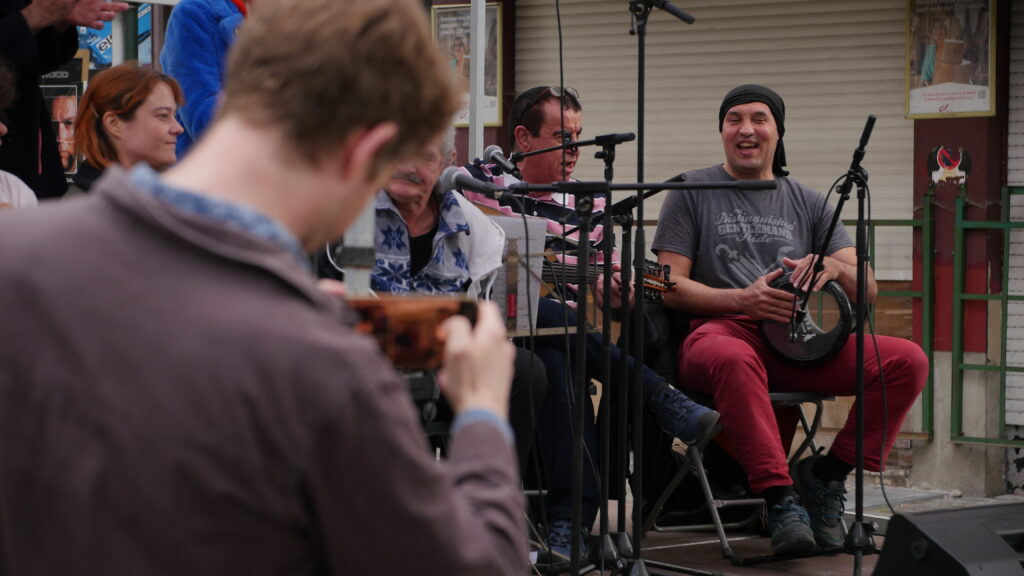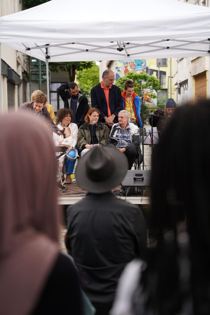 Avec les habitant.es des Marolles qui viennent le mercredi pour l’atelier de musique que l’on propose à l’Axoso, nous étions ravi.es de faire notre premier concert vendredi passé le 31 mai à l’occasion de la fête des voisin.es des Tanneurs. On s’est lancé dans la présentation de 6 titres que l’on s’est transmis et avons arrangé ou réarrangé pour l’occasion.