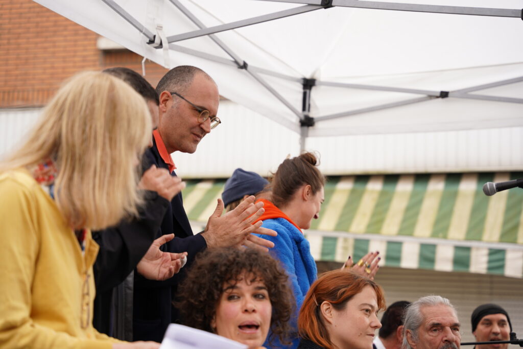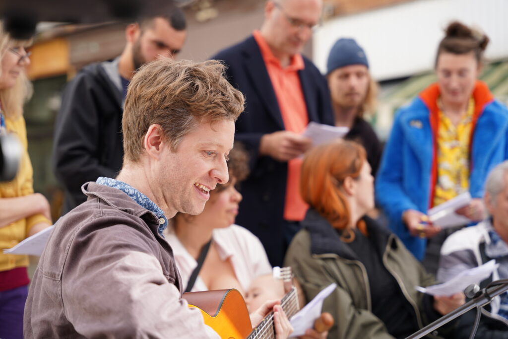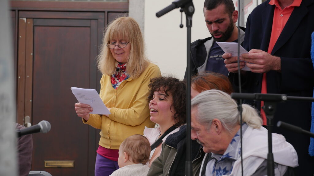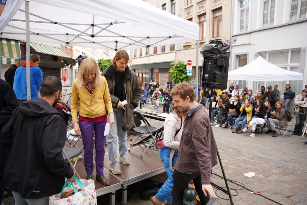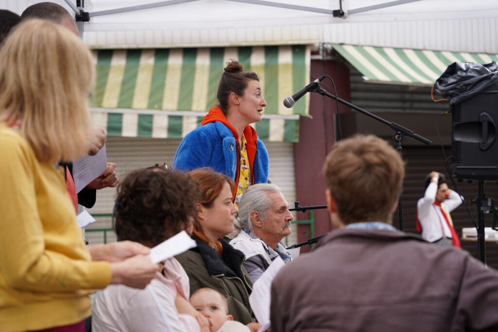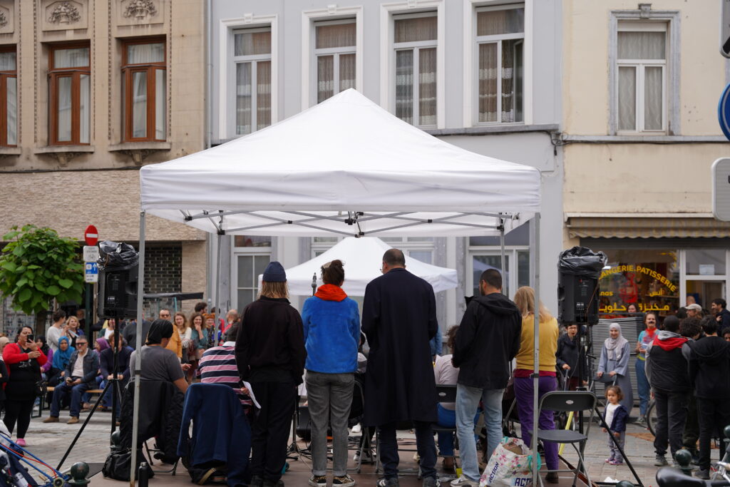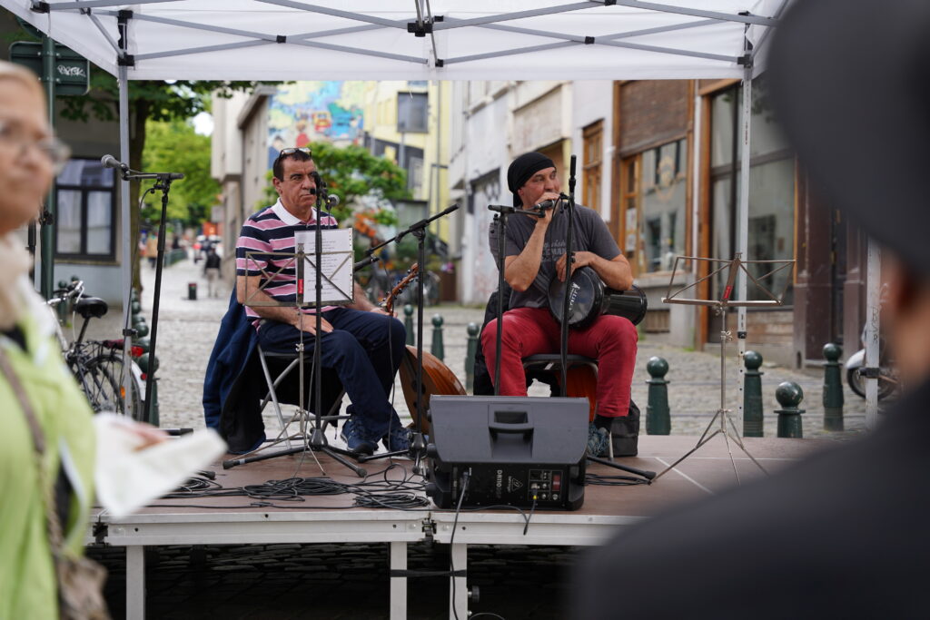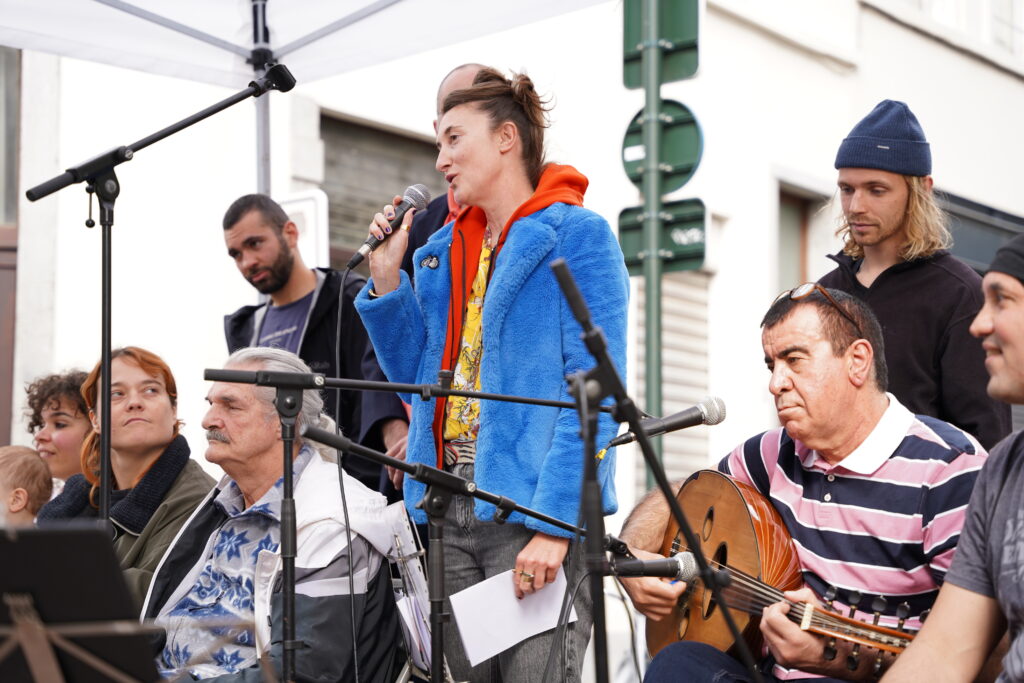 Avec les habitant.es des Marolles qui viennent le mercredi pour l’atelier de musique que l’on propose à l’Axoso, nous étions ravi.es de faire notre premier concert vendredi passé le 31 mai à l’occasion de la fête des voisin.es des Tanneurs. On s’est lancé dans la présentation de 6 titres que l’on s’est transmis et avons arrangé ou réarrangé pour l’occasion.