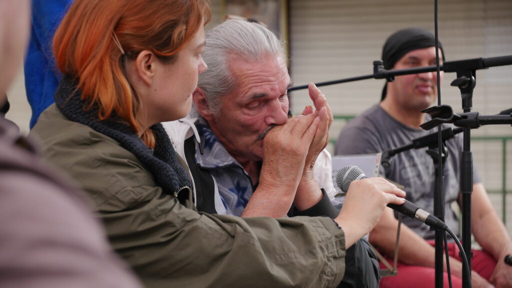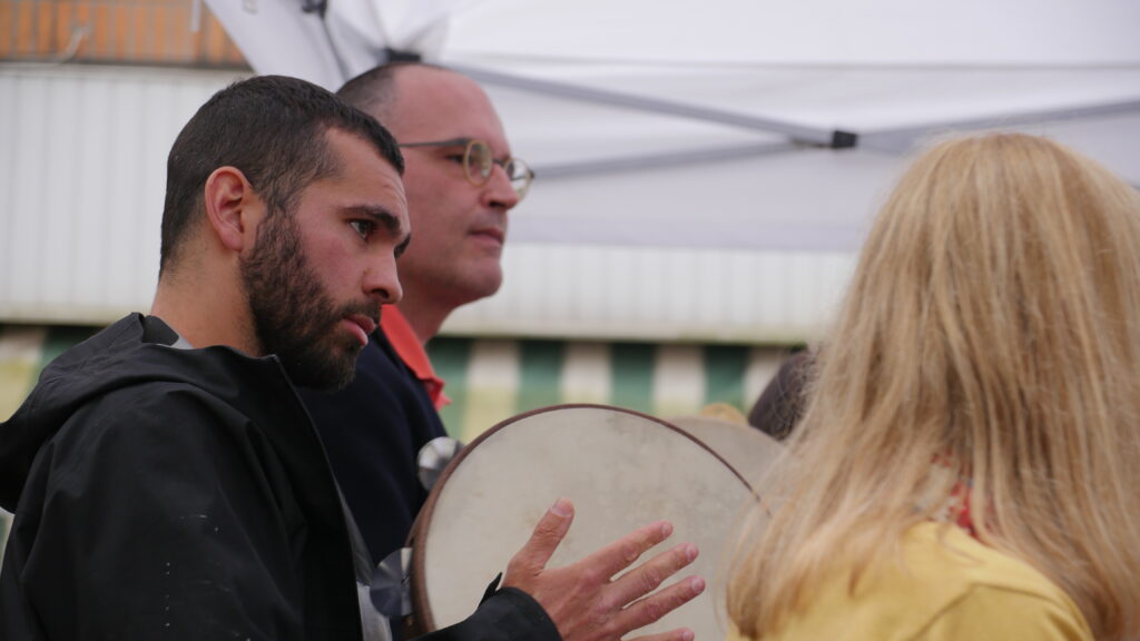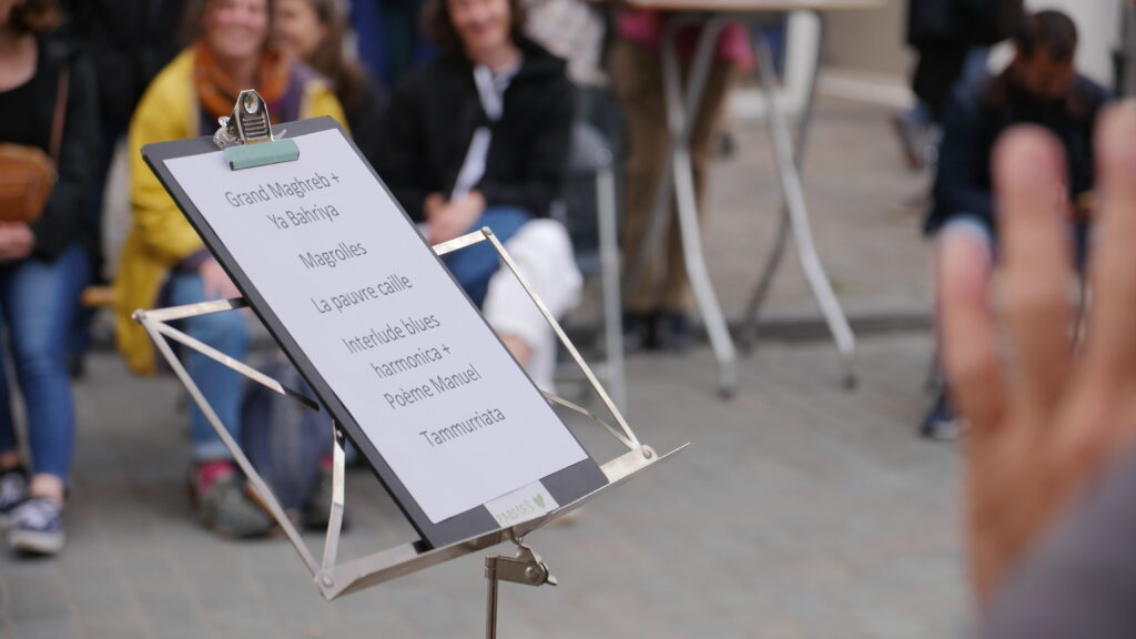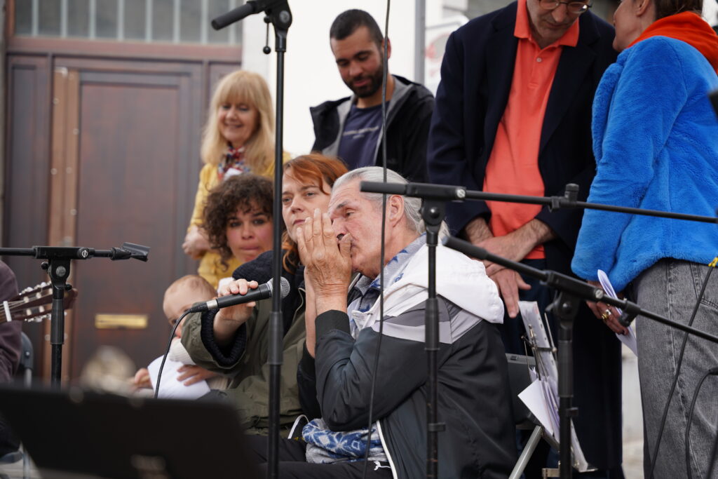 Cet atelier a été co-initié par Jean-Nicolas de l’Entr’aide des Marolles & Ulysse, harmoniste, même polyinstrumentiste et mélomane qui voulait partager sa passion pour la musique et qui nous propose régulièrement des accompagnements et des interludes. Ici un blues avec Thom à la guitare, que l’on a enchaîné avec un poème en galicien de Manuel.