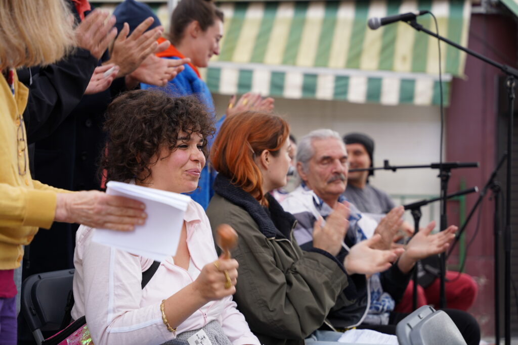 Aux côtés de Camille, Lucie, Claudia, Ulysse, Thom, Jean-Nicolas, Manuel, Nabina, Chafik & Moustafa, il y a aussi les très belles voix de Laura, Lina, Isabelle & Ada plus qu’actif.ves dans cet atelier. Merci à toustes pour ce très beau moment! Et aussi à Dimitri Tuttle d’être passé prendre quelques images : )